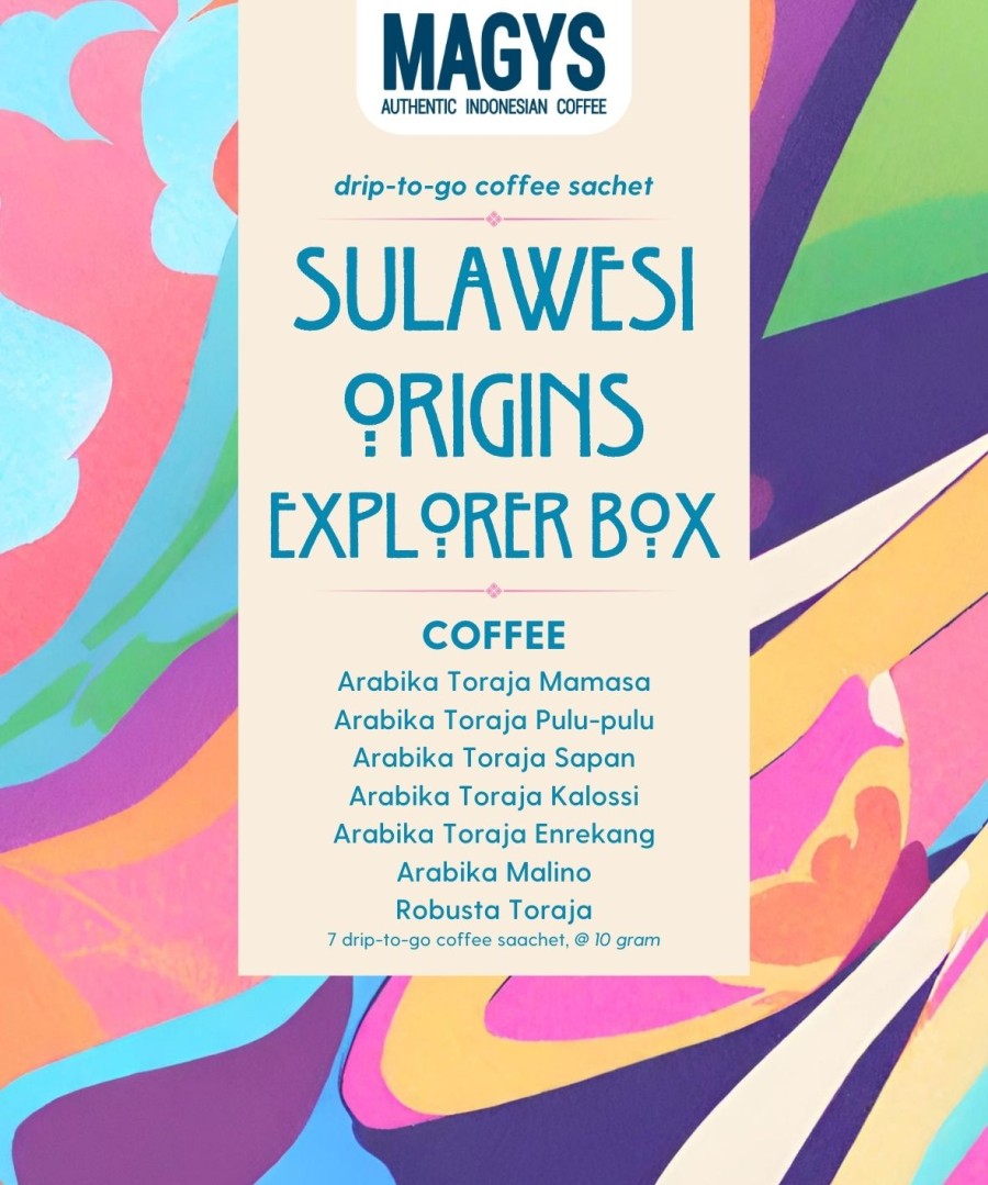 Terdiri dari 7 Drip-to-Go sachet kopi Indonesia dari Pulau Sulawesi (arabika & robusta):